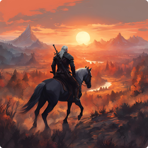 Geralt of Rivia, the protagonist of "The Witcher 3: Wild Hunt" is a legendary monster hunter known as a Witcher. Mutated through alchemical processes, he possesses enhanced strength, speed, and reflexes, making him a formidable warrior. Geralt is characterized by his silver hair, piercing yellow eyes, and stoic demeanor.Despite his outward toughness, Geralt is a deeply complex character, guided by his own code of ethics in a morally gray world. He’s often caught between the demands of his profession and the emotional ties to those he cares about. A master of both swordplay and magic, Geralt's journey is driven by his quest to find his adopted daughter, Ciri, while navigating the political intrigue and supernatural threats that plague the Continent.